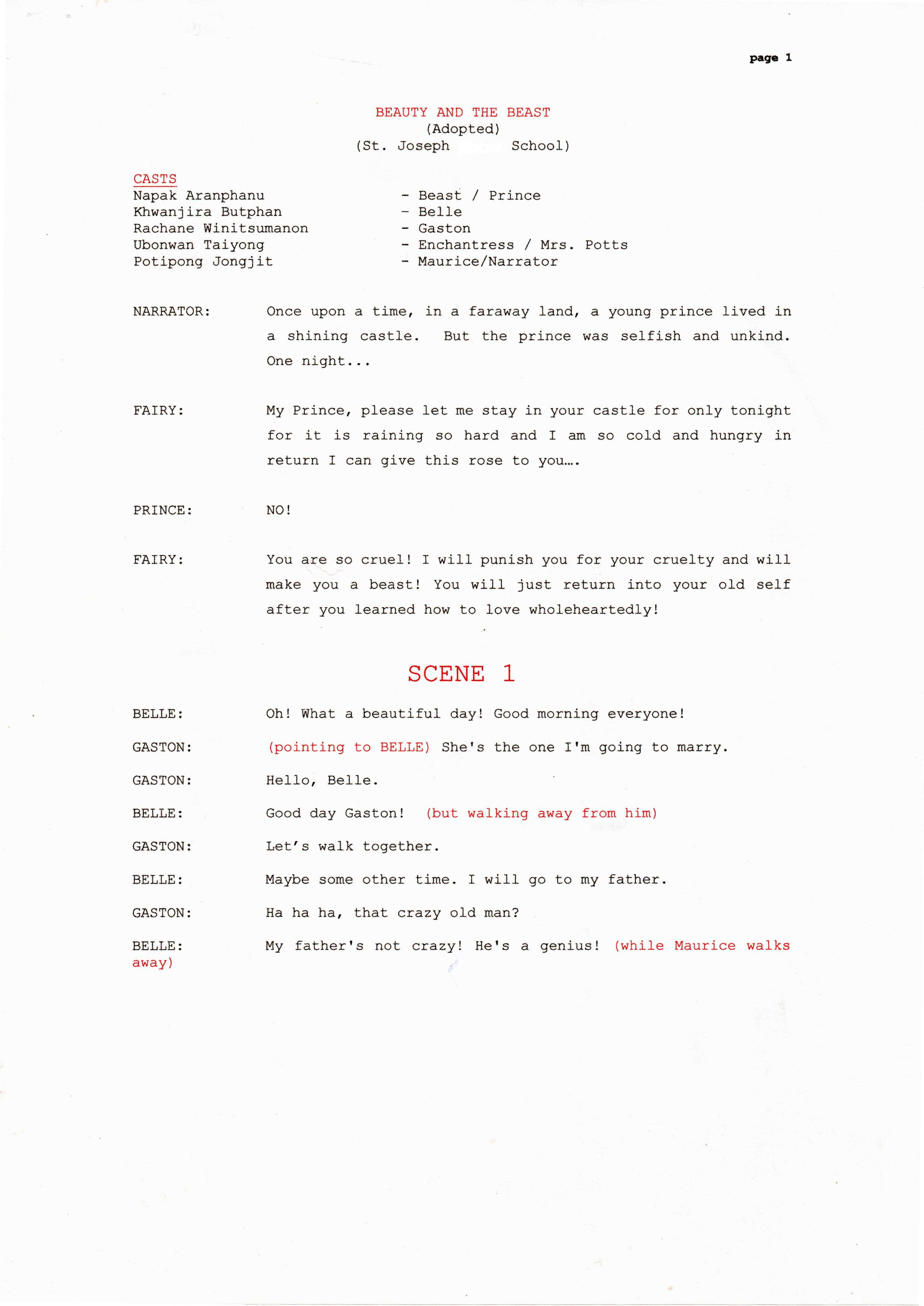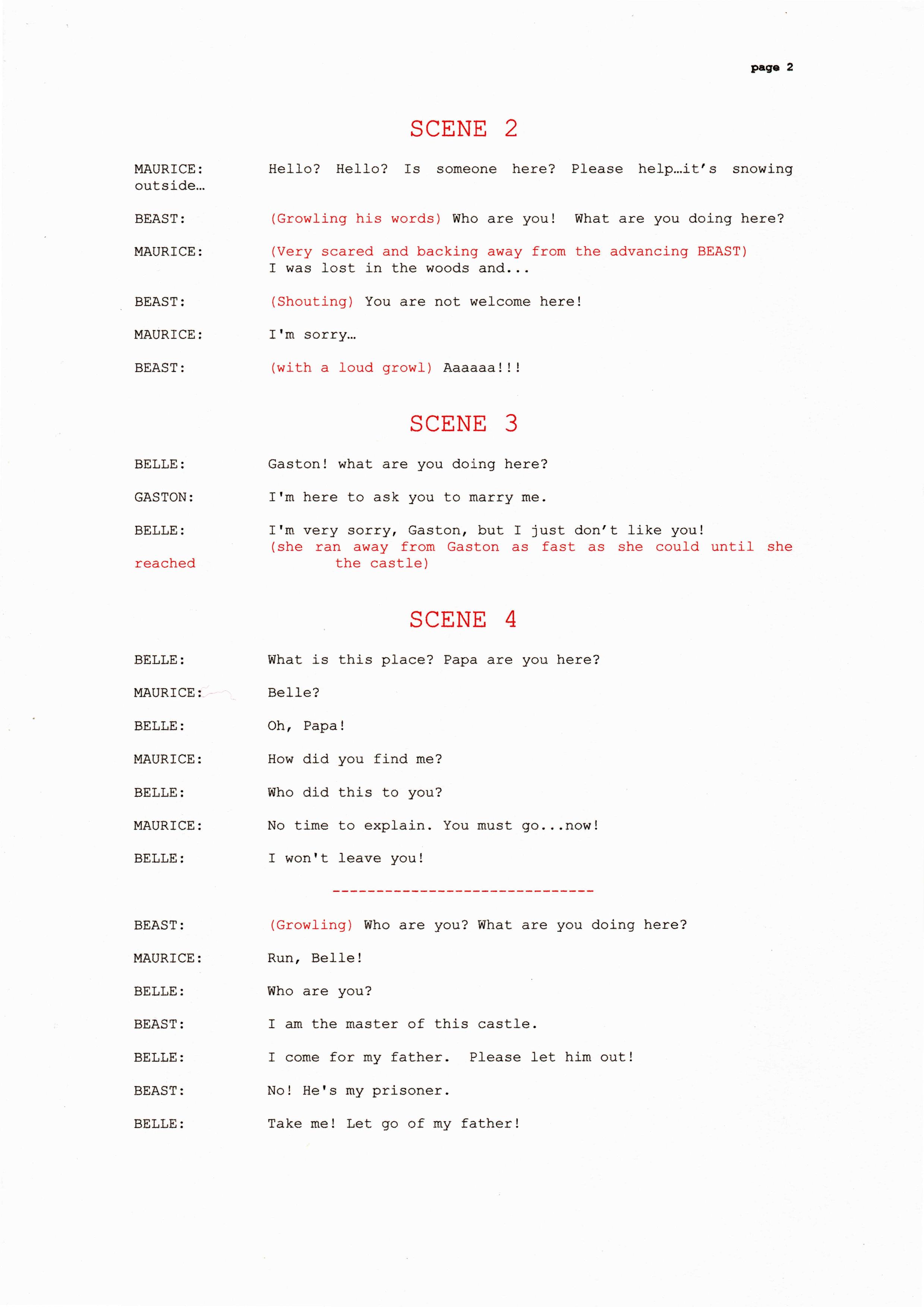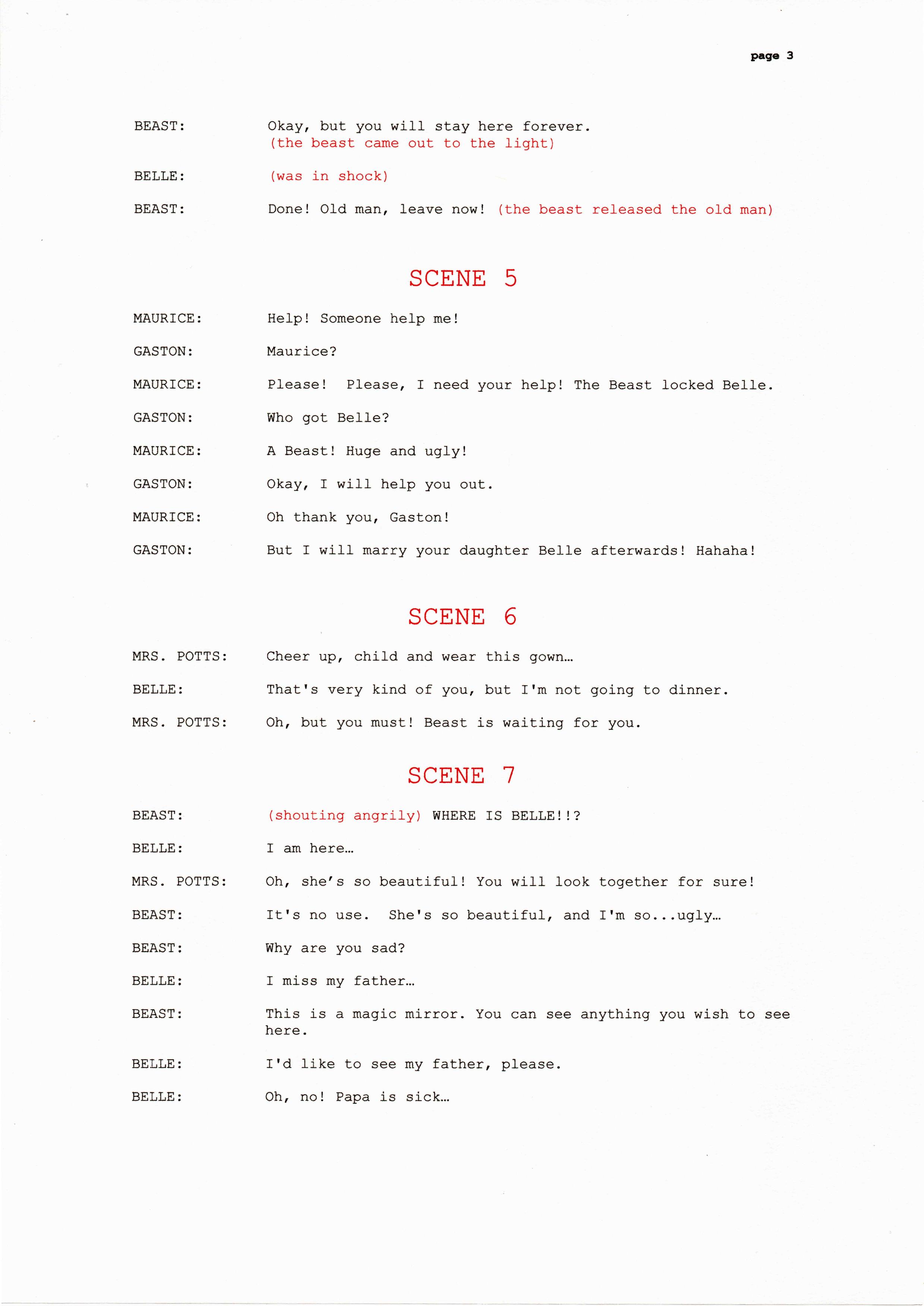 Beauty and the beast story telling script